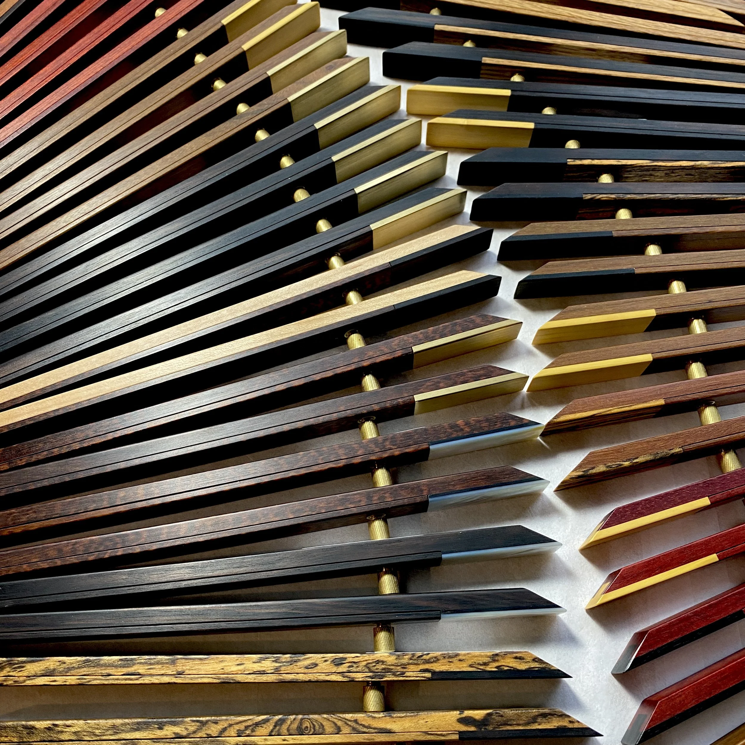 Woods: Ebony, Ziracoté, Bocoté, White Oak, Bloodwood, Boxwood, Ipé, Maple, Rhodesian Teak.